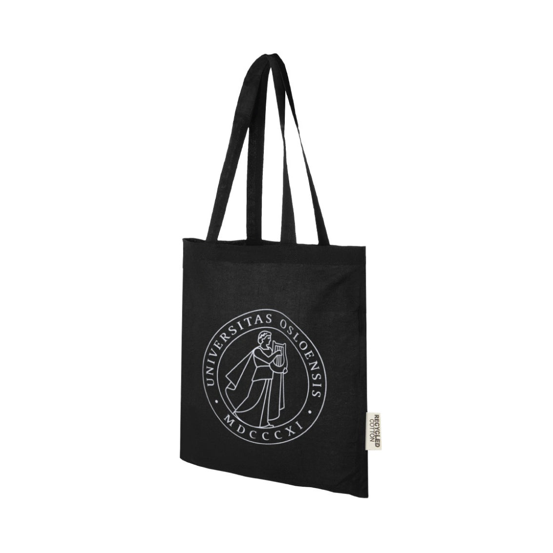 Laget av 100 % GRS sertifisert resirkulert bomull. Bomullstettheten på 140 g/m² bomull gjør den robust, langvarig og egnet til å bære tunge gjenstander.