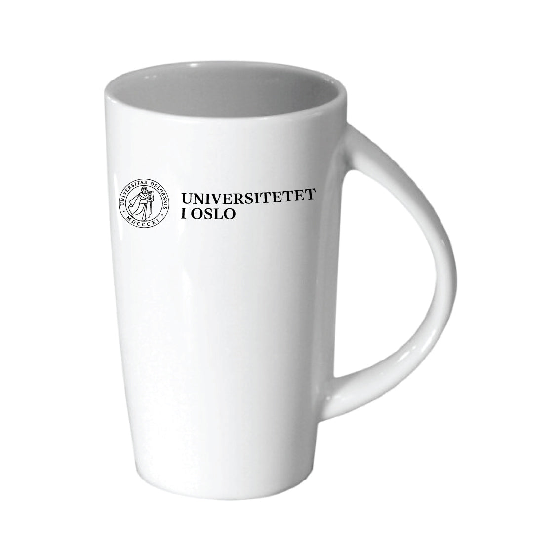 Porselenskopp på 25cl, med trykk av UiO-logo. Fås i både hvit og rød. Leveres i nøytral gaveeske.