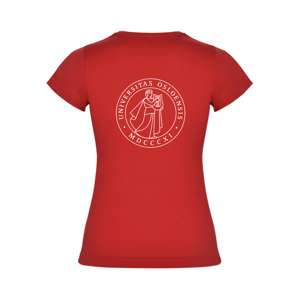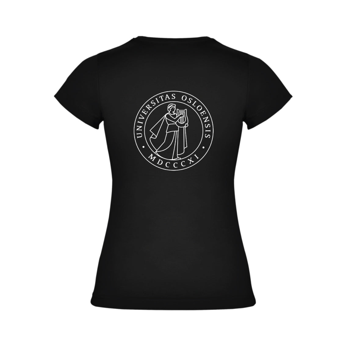 Trykk av tofarget UiO-logo på bryst og ensfarget segl på rygg.