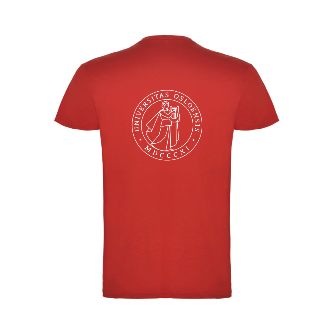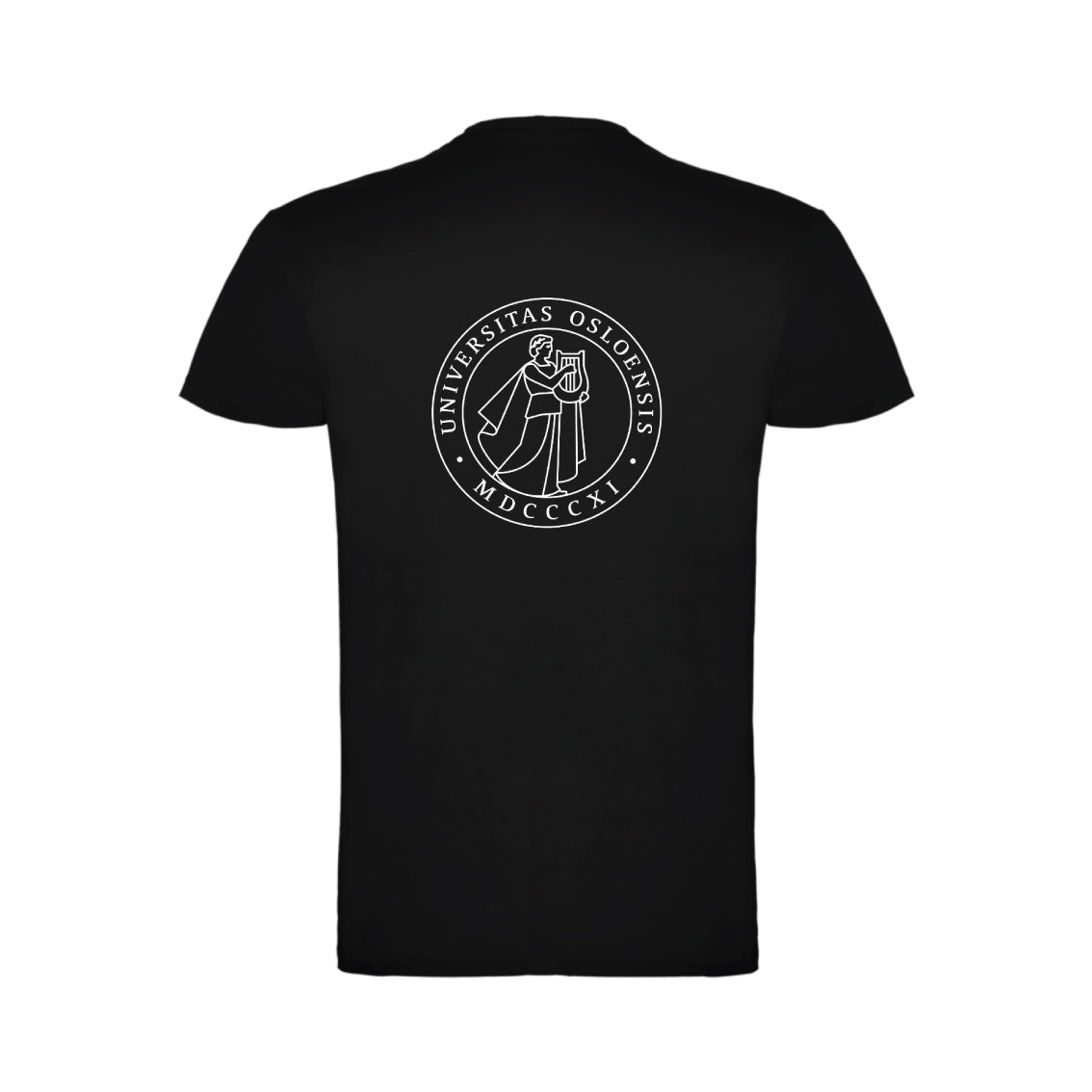 Trykk av tofarget UiO-logo på bryst og ensfarget segl på rygg.